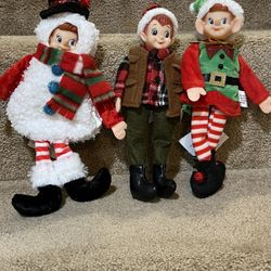 Lot of 3 Elf Ornaments Figurines Camper Snowman Bendable Arms Knees 9" NEW$20Holt, MI