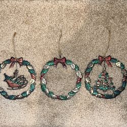 Metal lot of 3 wreath Christmas ornament Sleigh Red Green Gold$18Holt, MI