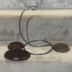 WROUGHT IRON ORNAMENT OR GLOBE DISPLAY 12” & Wooden base displays lot of 4$20Holt, MI