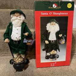 Vintage 12" Kurt Adler Irish Santa O’Shaughnessy Figure Doll with Box pot o gold$40Holt, MI