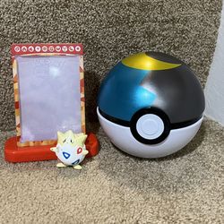 Pokemon tin ball & Card holder display frame & pvc figure lot of 3$15Holt, MI