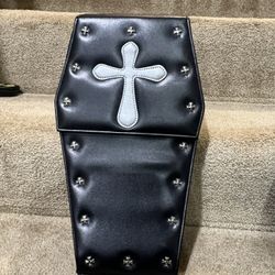 Gothic Coffin Shaped Punk Women Backpack with Cross Chain Halloween Coffin Bag $65Holt, MI