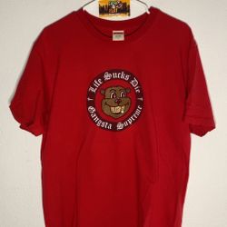 Supreme Life Sucks Die LSD Gangsta Beige Short Sleeve T-Shirt Medium Red$40Fennville, MI