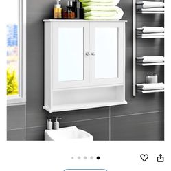 VASAGLE Bathroom Cabinet with Mirror, Wall Cabinet with 2 Mirrored Doors, Adjustable Shelf, Open Compartment, Wall-Mounted, 5.1 x 22.2 x 23 Inches, Wh$40Dearborn, MI
