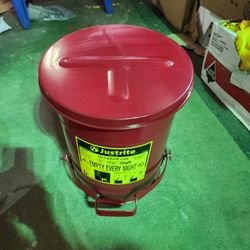 Justrite Can 6 Gallon, Oily Waste Can, Hands-Free, Self-Closing Cover, SoundGard™