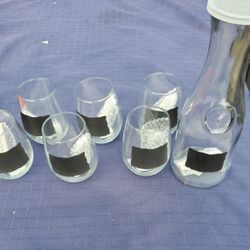 Pier 1 Set Of 6 Stemless Wine Glasses And Carafe With Chalkboard Label And Chalk $16Dearborn, MI