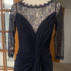 Tadashi Shoji Designer Dress Navy Blue Lace & Ruched Cocktail Dress – Size XS$150Dearborn, MI