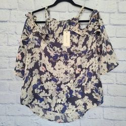 Sim & Sam Cold Shoulder Ruffle Blouse Top Floral Multicolor Size L$5Dearborn Heights, MI