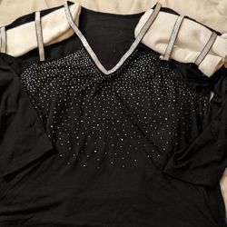 New Beautiful Sexy Top Plus Size 4x, Bust 54", Black, Bare Shoulders With Silver Ribbon Crossing, The Front Is Embellished With Rhinestones.$12Oregon, OH