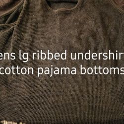 Mens Medium 32-34 Black + White Cotton Pajama Pants + Large 42-44 Dark Blue Ribbed Undershirt. East, West, North$8Toledo, OH