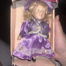 Vintage Porcelain Doll With Purple Dress And White Hat 30 Inches Tall $30Dearborn Heights, MI