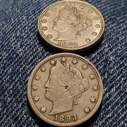 CB51/52SX150X2 2LOT NICER V NCKELS 1883 5¢ Nickel AND 1893 LOWER MINTAGE, GOOD PRICE$48Westland, MI