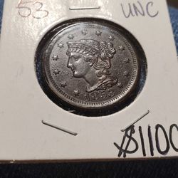 68SX1050 AWESOME BOLD DETAIL HIGH GRADE 1853 LARGE C STRUCK ON ERROR PLANCHET$425Westland, MI