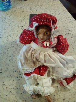 Vintage porcelain cat doll/red and white print dress & bonnet/length 16".$16Taylor, MI