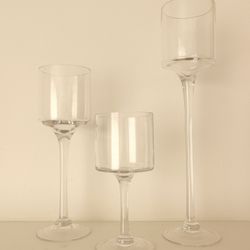 CLEAR GLASS LONG STEM PEDESTAL CUP CANDLE HOLDERS SET OF 3 $19Ann Arbor, MI