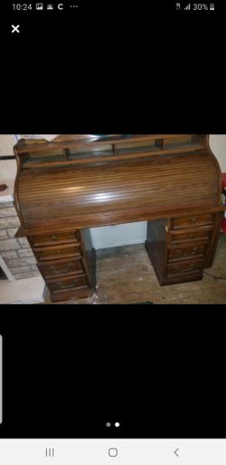 For Sale: Corner Nightstand, Roll-Top Desk, solid wood table and Vintage-Style Writing Desk / Vanity$100Lincoln Park, MI