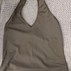 Womans Olive Green Halterneck Top V-Neck Tank Medium 8-10 Satin Facing Gives A Shine. 100% Polyester$15Oregon, OH