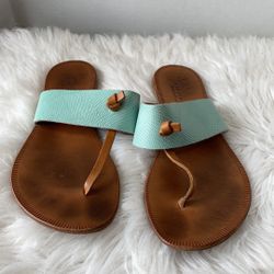 Joie A La Plage Womens Baled Leather Teal Brown Thong Sandal Size 38.5/ 8 USA $20Dearborn, MI