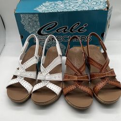 Skechers 2 pair white and brown Beverlee Singback Vegan Wedges Luggage -size 8$60Dearborn, MI