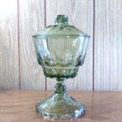 Vintage Olive Green Glass Hazel Atlas Reflections Lidded Pedestal Candy Dish$28Breckenridge, MI