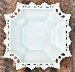 Antique white milk glass bowl with lacey rim$65Saginaw, MI