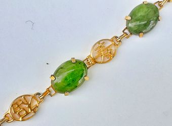 HOBE signed delicate JADE and goldtone Kanji link bracelet ! 7.5" L$75Saginaw, MI