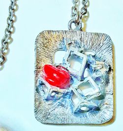 Mid century 1960s modern turquoise blue costume jewelry necklace pendant w chain SIGNED$45Saginaw, MI