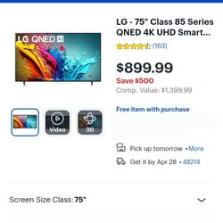 Lg QNED 85 Series 75 Inch Smart Tv$775Hamtramck, MI