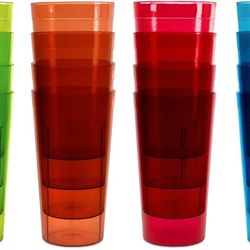 Plastic Tumblers Drinkware Glasses Cups - Acrylic Tumbler Set of 16 Break Resistant 20 oz. in 4 Assorted Colors Restaurant Quality Tumblers Dishwasher$15Troy, MI