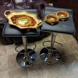 2 Black Bar Chairs And A Golden Tray With It's Pots$30Dearborn Heights, MI