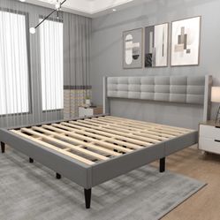 Grey King Size Platform Bed Frame With Headboard New$100Romulus, MI