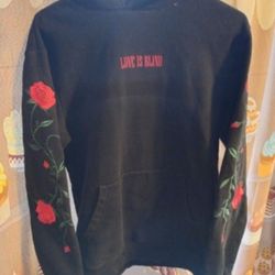 H&M Love Is Blind Black Hoodie Roses Pockets Pullover Size Small$10Washington, MI