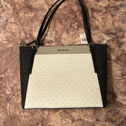 Michael Kors Signature Handbag In Black, Cream, & Gray$150Redford Charter Township, MI