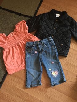 Kids 12- 24 months black jacket..jeans size 4 ...shirt 4T$8Canton, MI