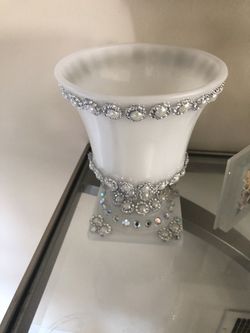 Nice white pot candy or fruit or cookies w silver & pearl (handmade)$10Sterling Heights, MI