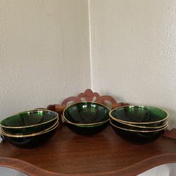 8 Vintage Green Bowls with Gold Trim 5”$50Huntingtn Wds, MI