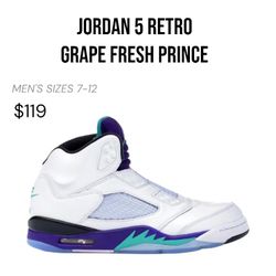 Air Jordan 5 Retro Grape Fresh Prince$119Livonia, MI