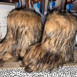 Brown & Black mid calf faux fur boots $45Southfield, MI