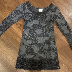 Designer IRIS & IVY Girl Gray Black Floral Roses Girl 8 Long Sleeve Ruffle Dress NWOT$39Macomb, MI
