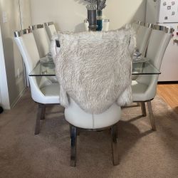 Dining Room Set/ Glass Table With Chrome Pedestal. Chairs/ White and Chrome $650Trenton, MI