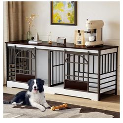 78 Inch Double Dog Crate Furniture, Extra Large Dog Kennel Indoor for 2 Dogs, Heavy Duty Dog Cage with Divider, Wooden Dog House Decorative Table TV S$175Sterling Heights, MI