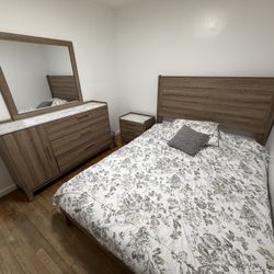 Modern 5 Piece Bedroom Set & Queen Mattress - Bedframe Dresser & Mirror Nightstand Hutch Dresser of Drawers$600Inkster, MI