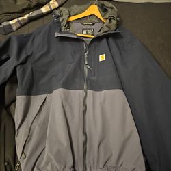 Blue And Grey Hooded Carhartt Jacket L.$40Macomb, MI