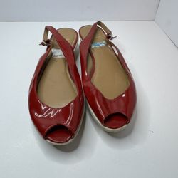 Stuart Weitzman Red Patent Leather Peep Toe Slingback Sandals Size 8.5M $39Bloomfield Hills, MI