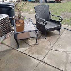 Outdoor Wicker Patio Table With Glass Top And Chair Dark Brown $30Dearborn Heights, MI