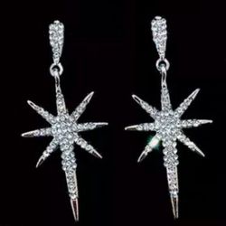 14K white Gold plated Crystal SNOWFLAKE North STAR long dangle stud earrings$24Ray, MI