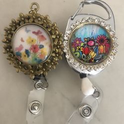2 TWO Gold Silver CRYSTAL FLOWER ART NURSE BADGE ID HOLDERS $12Macomb, MI
