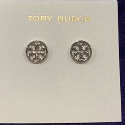 Designer Tory Burch round silver T logo Miller stud earrings$32Ray, MI
