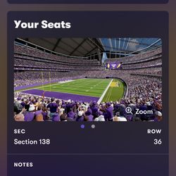 Vikings Vs Packers Tickets . Lower Level Section 138. Two Tickets $170 each$150Saint Paul, MN