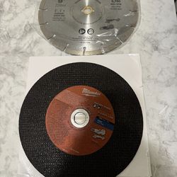 Two Saw Blades Milwaukee: 9” For Asphalt, Stone& Concrete; Cut Off Wheel Abrasive for Metal$60Fridley, MN